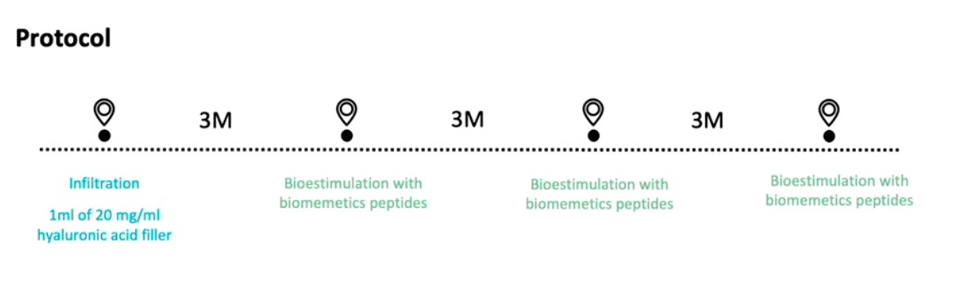 2. Підтримувальна терапія: кожні 3 місяці протягом року проводяться сеанси мезотерапії з використанням розчинів біоміметичних пептидів.