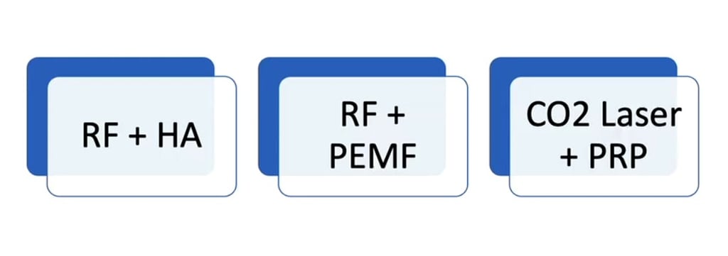 Такий підхід дозволяє одночасно впливати на декілька симптомів (наприклад, сухість і атрофію), що забезпечує синергію, подовжує тривалість результату та підвищує загальну задоволеність пацієнтки.