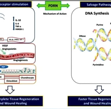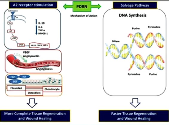 Особлива увага приділяється полідезоксирибонуклеотидам (PDRN) та екзосомам. Механізм дії PDRN, які отримують із ДНК молочка лосося, є двобічним: