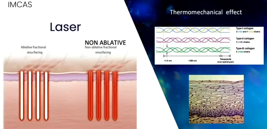 Метою лазерної терапії є стимуляція вироблення нового колагену (типу I та III) та еластину, а також ретракція (скорочення) тканин. Під час процедури використовуються різні насадки: