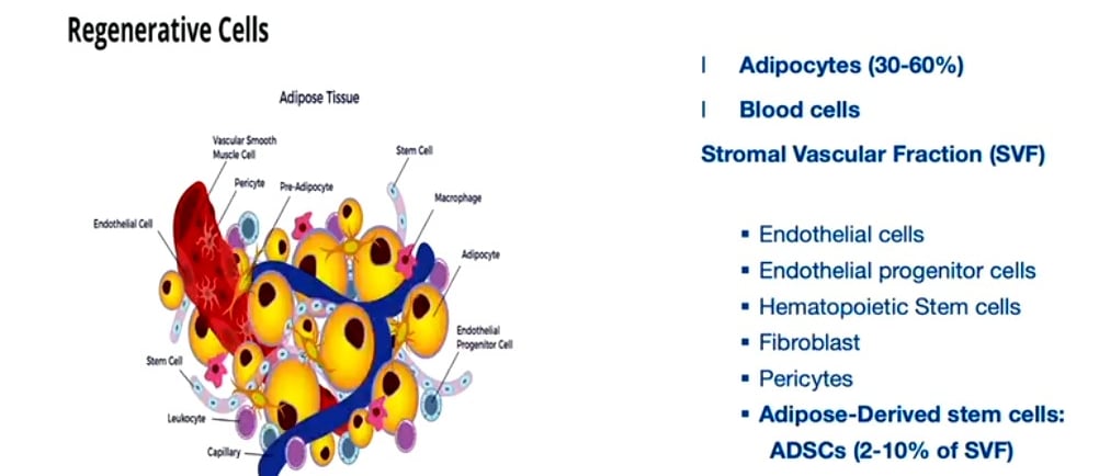 Стромально-васкулярну фракцію (SVF): багату на стовбурові клітини, отримані з жирової тканини (ADSCs).